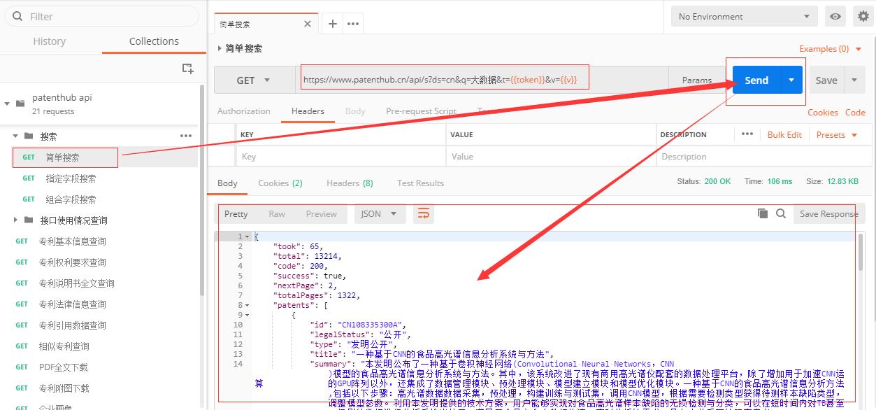 5、根据图指示,选择要测试的API接口,点击SEND即可获得测试结果。